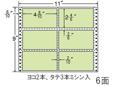 【仕様】●色:グリーン●面数:6●シートサイズ:11インチ×9インチ(279mm×229mm)●ラベルサイズ:4 8/10インチ ×2 4/6インチ (122mm×68mm)●対応プリンタ:ドットプリンタ●入数:500折(3000枚)【備考】※メーカーの都合により、パッケージ・仕様等は予告なく変更になる場合がございます。